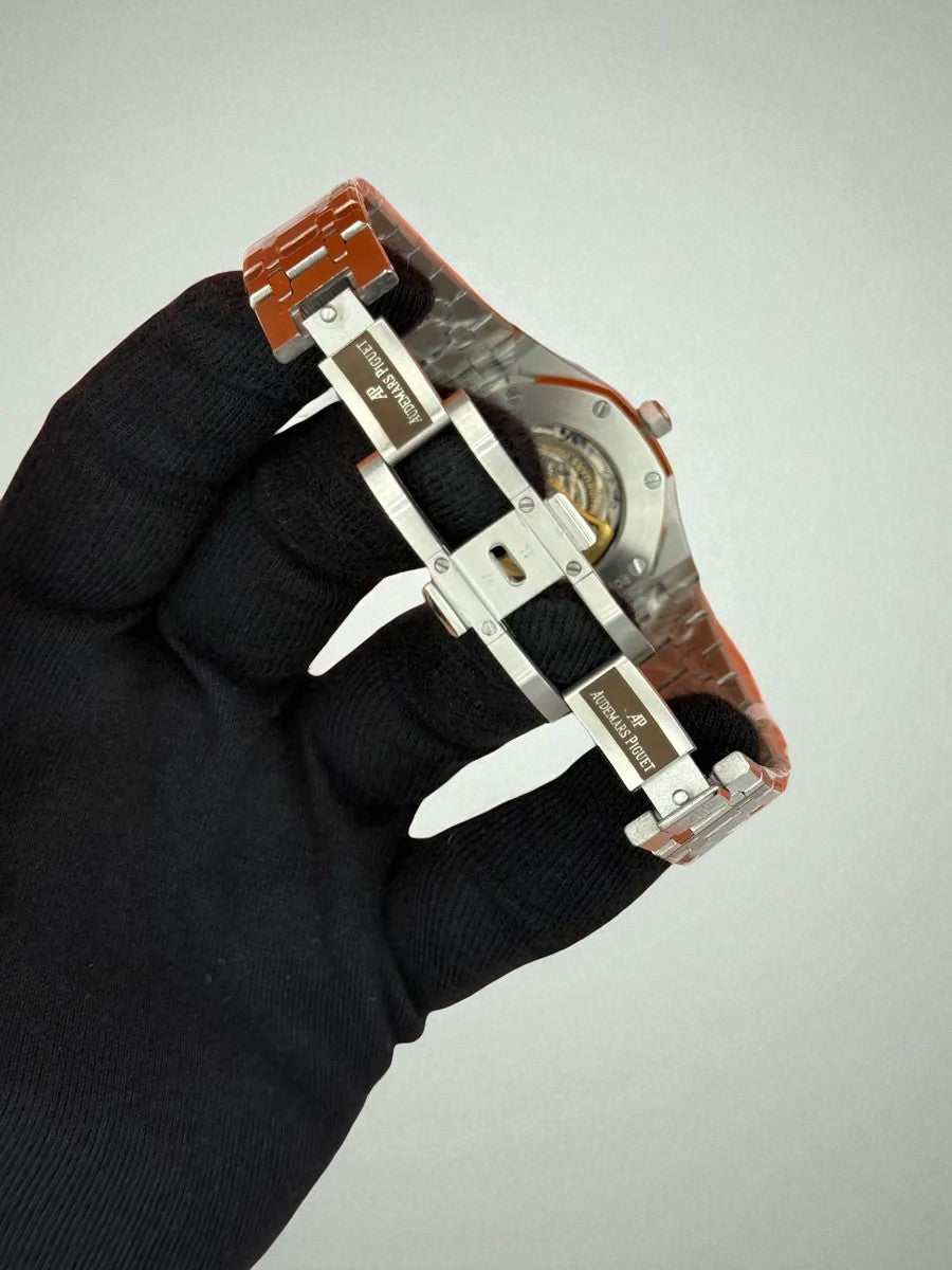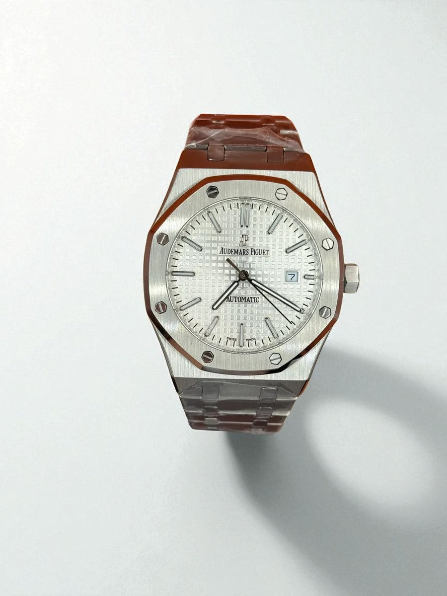 Audemars Piguet Royal Oak, zarafet ve ikonik tasarımıyla lüks saat dünyasında ayrıcalıklı bir yere sahiptir. Beyaz Grande Tapisserie kadranı, paslanmaz çelik kasası ve entegre bileziğiyle hem modern hem klasik bir görünüm sunar. İsviçre mühendisliğinin kusursuz işçiliği ile üretilmiş otomatik mekanizması, yüksek hassasiyet ve uzun ömürlü kullanım sağlar. Prestijini ve stilini bileğinde taşımak isteyenler için ideal bir seçimdir.
