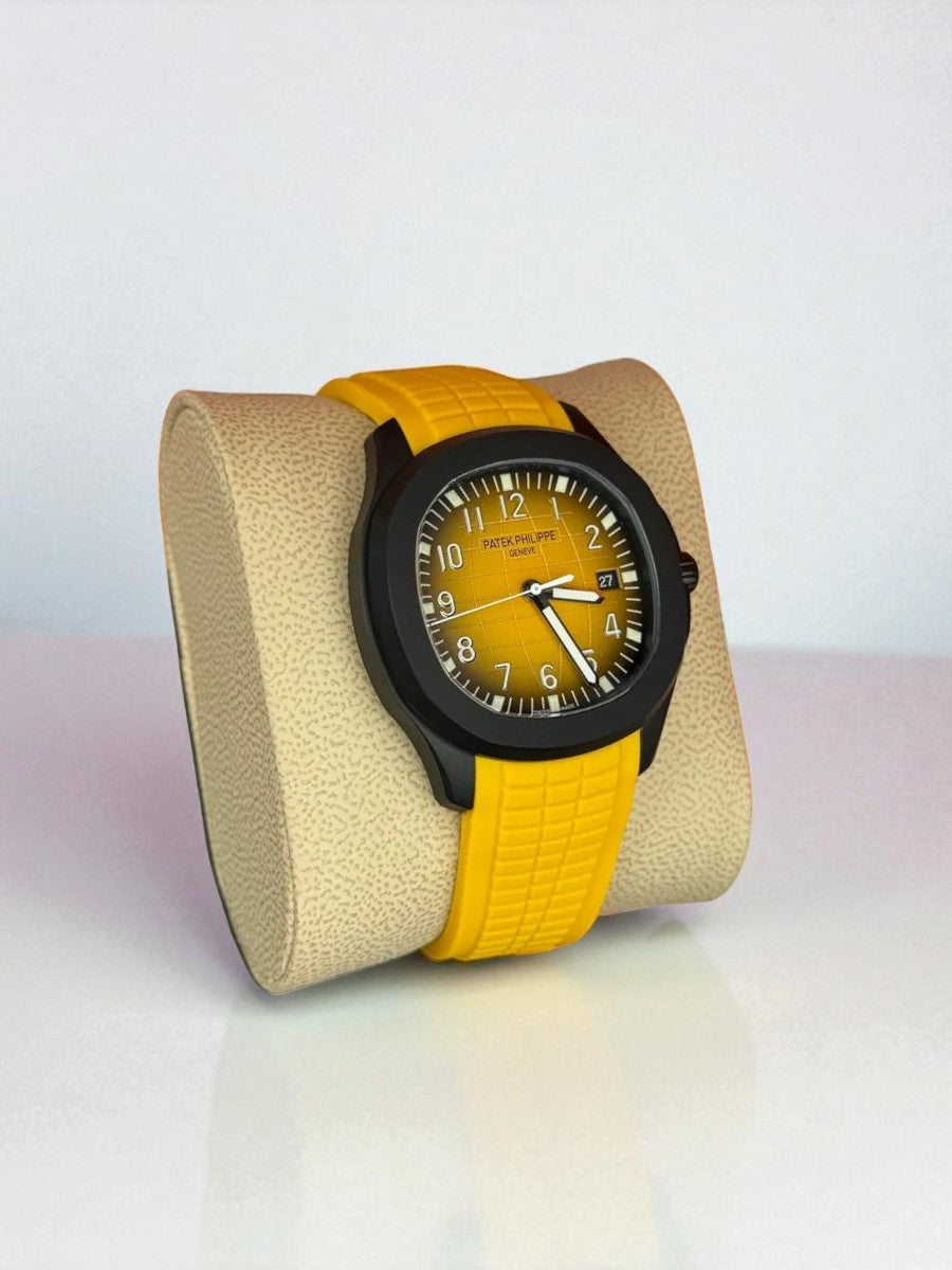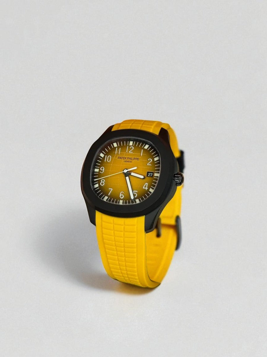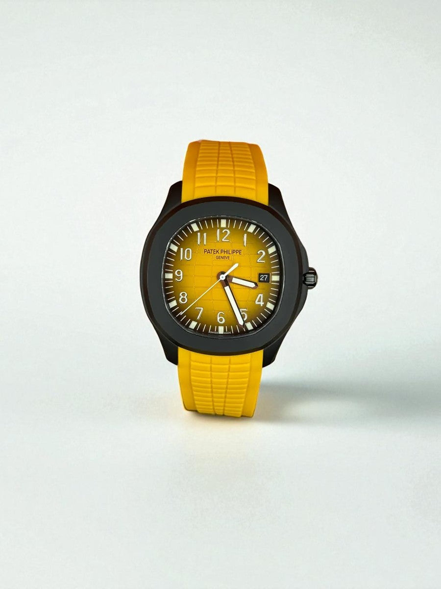 Patek Philippe Aquanaut’un bu özel modeli, dinamik ve enerjik bir duruş sunan sarı kadranı ve kauçuk kayışı ile dikkat çeker. Siyah kasa ile oluşturduğu kontrast, cesur ve sportif bir şıklık yaratır. Aquanaut’un modern çizgilerini taşıyan bu saat, sıradanlıktan uzak, fark yaratmak isteyenler için tasarlandı.